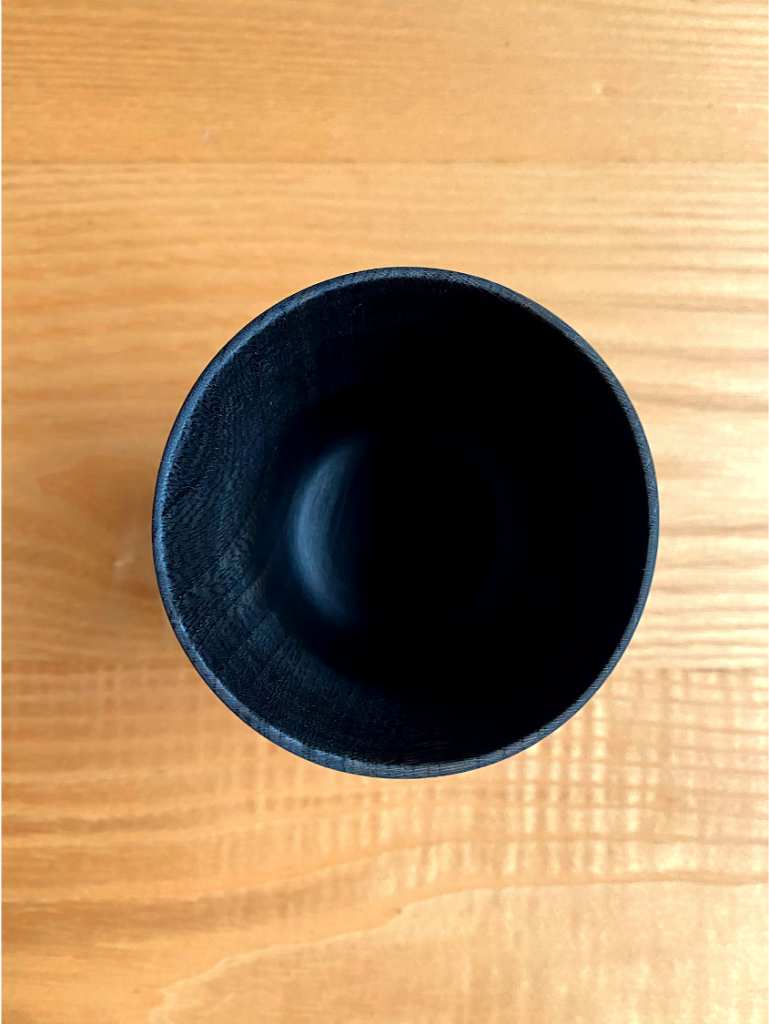 これはお椀を真上から見た写真です。ここで得られる情報は丸い形、黒、お椀というものでしょうか。お椀と言わなければ、球に見えるひともいるかも?