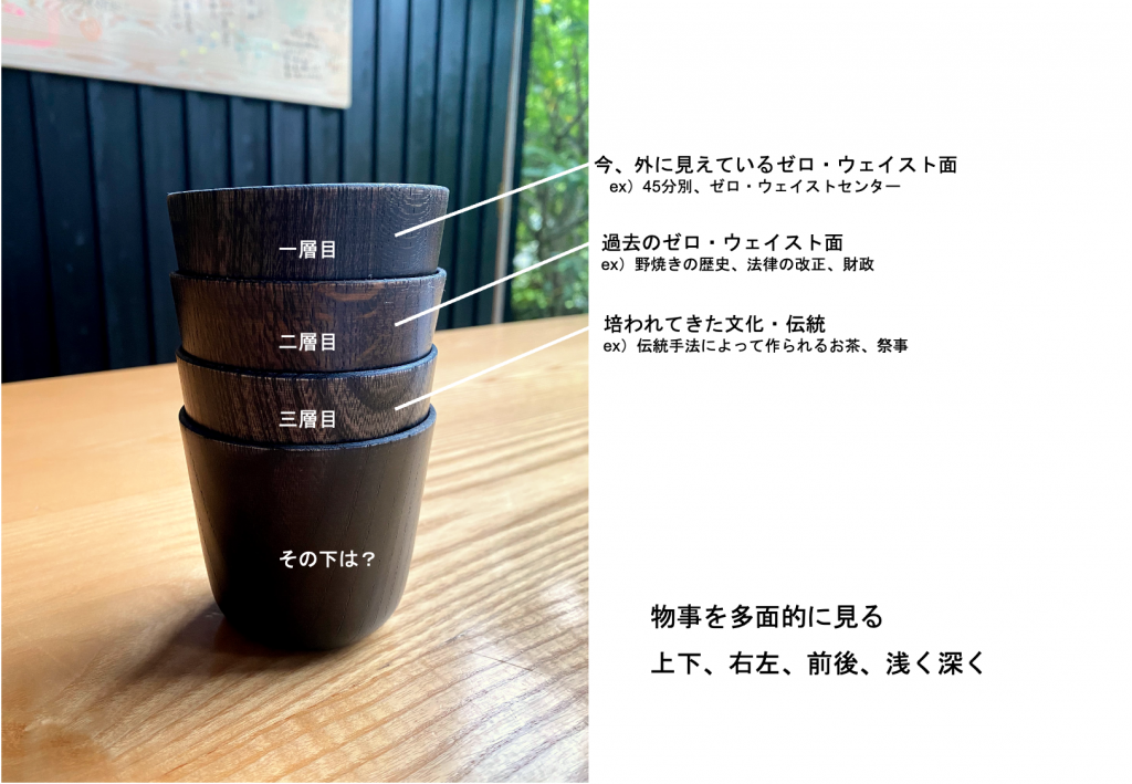 それぞれの層で見えてくるものが違うし、私が、あなたがどこまで知りたいかによって触れられる層が変わってきます。こうやって見ると、ゼロ・ウェイストの解釈が廃棄物だけではなく、様々な要素が絡んでいることがわかりやすくなったり、他の人の観点が混ざる楽しさが膨らんでいきます。