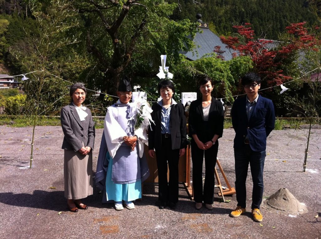 カフェの地鎮祭の時の写真。2012年4月の様子。やっとこさ地鎮祭できるぜって喜びました。