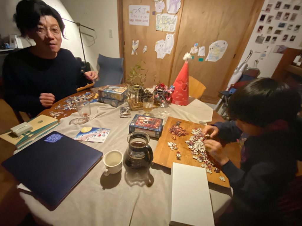 我が家では、父ちゃんサンタから家族一人一人にパズルが配られました。一番最初にできた人がプレゼントをゲットでき、一番遅かった人は罰ゲームらしいです。