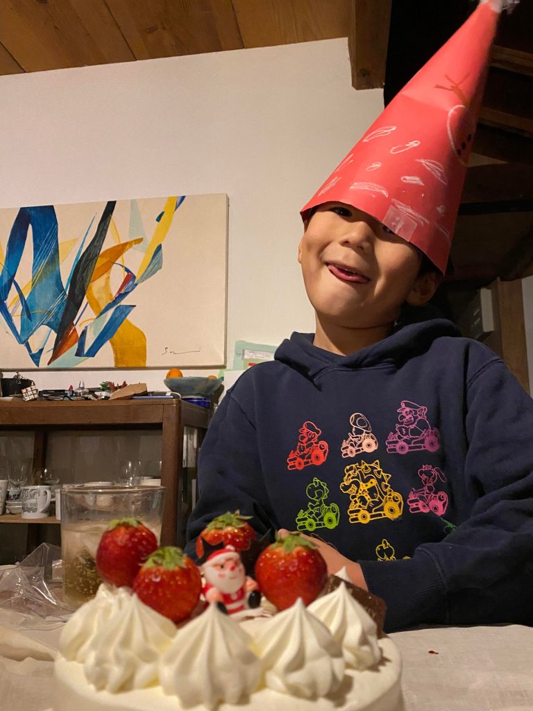 クリスマスケーキを無事、うちの息子サンタ氏が受取りまして、ケーキは準備完了といったところです。