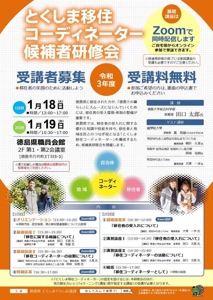 いわゆる徳島県に移住したいという人の受け入れ業務をしたり、移住後のサポートをしたりとそういう役割を担う人を育てようという研修会ですね。