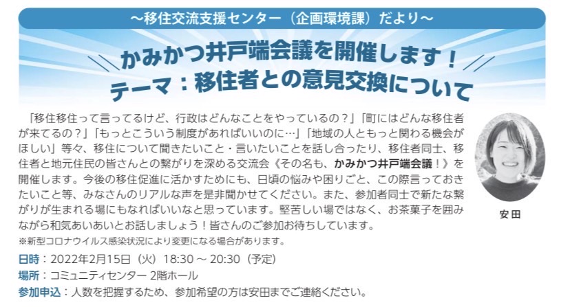 私が移住してから(約7年)はこのような機会は今まで1度もなかったので、どんな人が来るんだろう、どんな話をするんだろうという興味本位で参加しました。