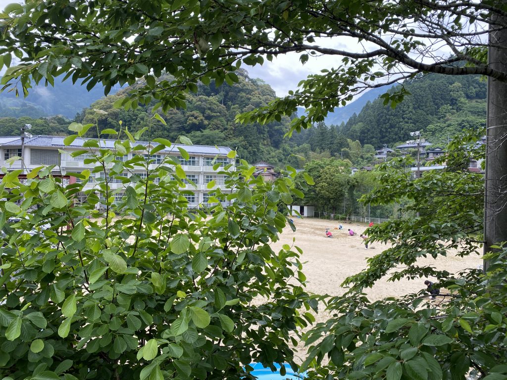 保護者が協力して、プールの周りの草を刈ったり、運動場の草抜きをしました。
