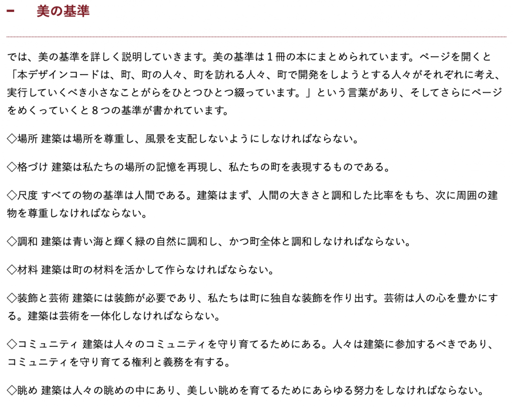 最近教えてもらったものに神奈川県真鶴市の「美の基準」というのがあります。