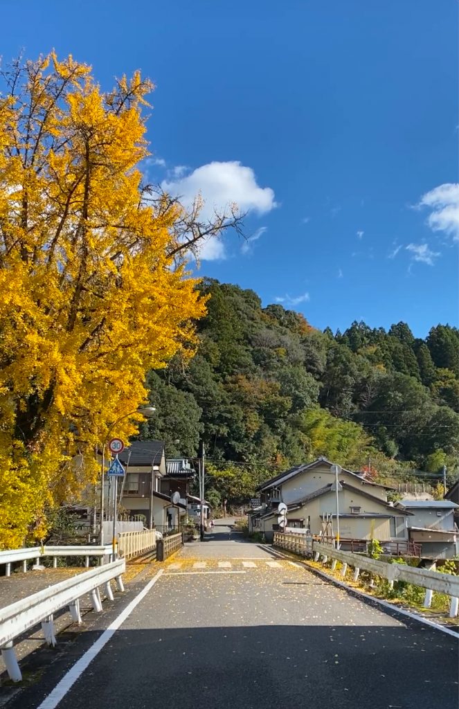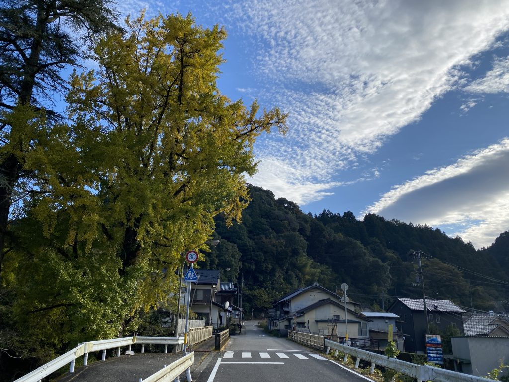 11月21日に撮影した、上勝小学校前の銀杏の木。その時はまだ緑色の葉っぱが多かったのですが…。